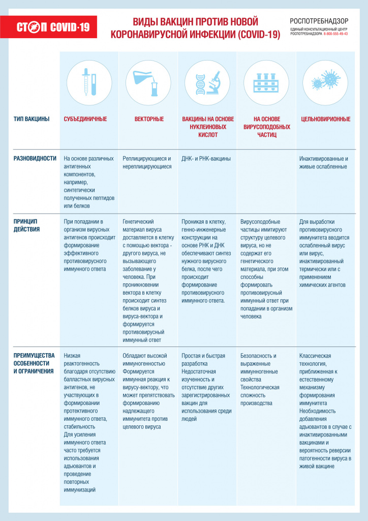 Сравнение видов вакцин от COVID-19 от Роспотребнадзора: